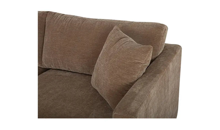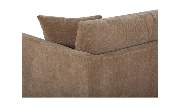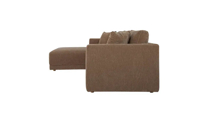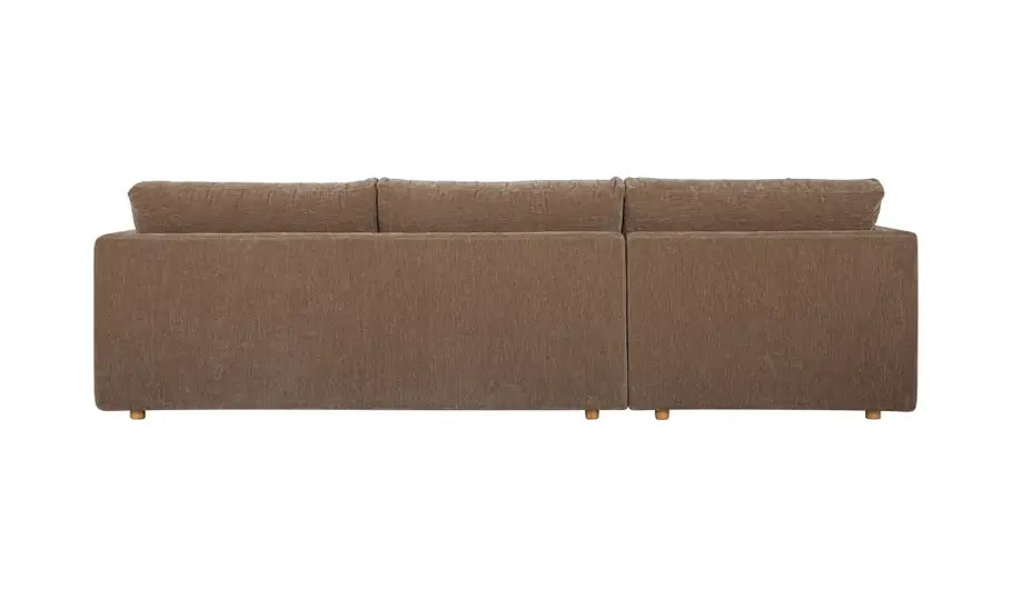 Comfort with structure—that’s Beck's sweet spot. Designed with generous seat depth, supportive foam-and-fiber cushions, and a full-length chaise (left or right), Beck brings spacious lounging without the bulk. Textured camel-toned upholstery adds warmth and depth, while solid oak legs keep the silhouette grounded. Underneath, a solid beech and plywood frame gives it real staying power. It’s clean, cozy, and built to handle the long haul.