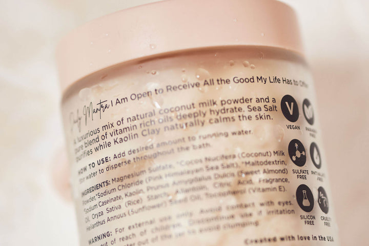 A luxurious mix of natural coconut milk powder and a pure blend of vitamin rich oils deeply hydrate. Magnesium sulfate provides increased circulation, stress relief and can improve sleep quality. Himalayan Sea Salt purifies while Kaolin Clay naturally balances the sebum and soothes the skin. Use as a part of your daily routine to create calm in your life.