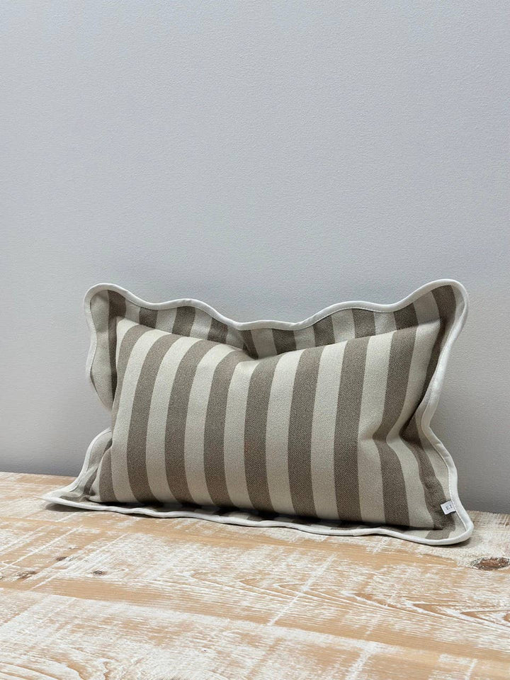 Chloe Greige Stripe Scalloped Edge Pillow-Cover Only