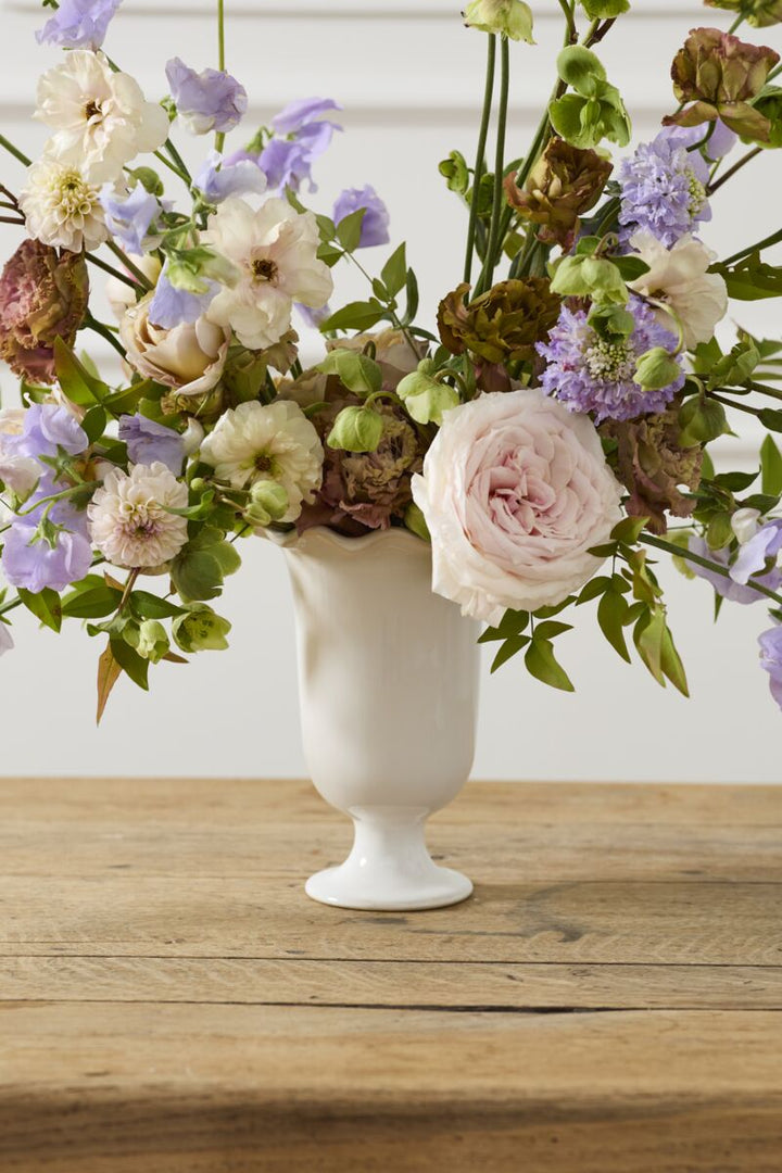 With a bit of flare and a lot of functionality, the Esperanza Vase is a glossy, ceramic footed vase perfect for florals at any wedding or event. A true floral essential, the Esperanza is a timeless vase for wholesalers and bespoke sellers alike.