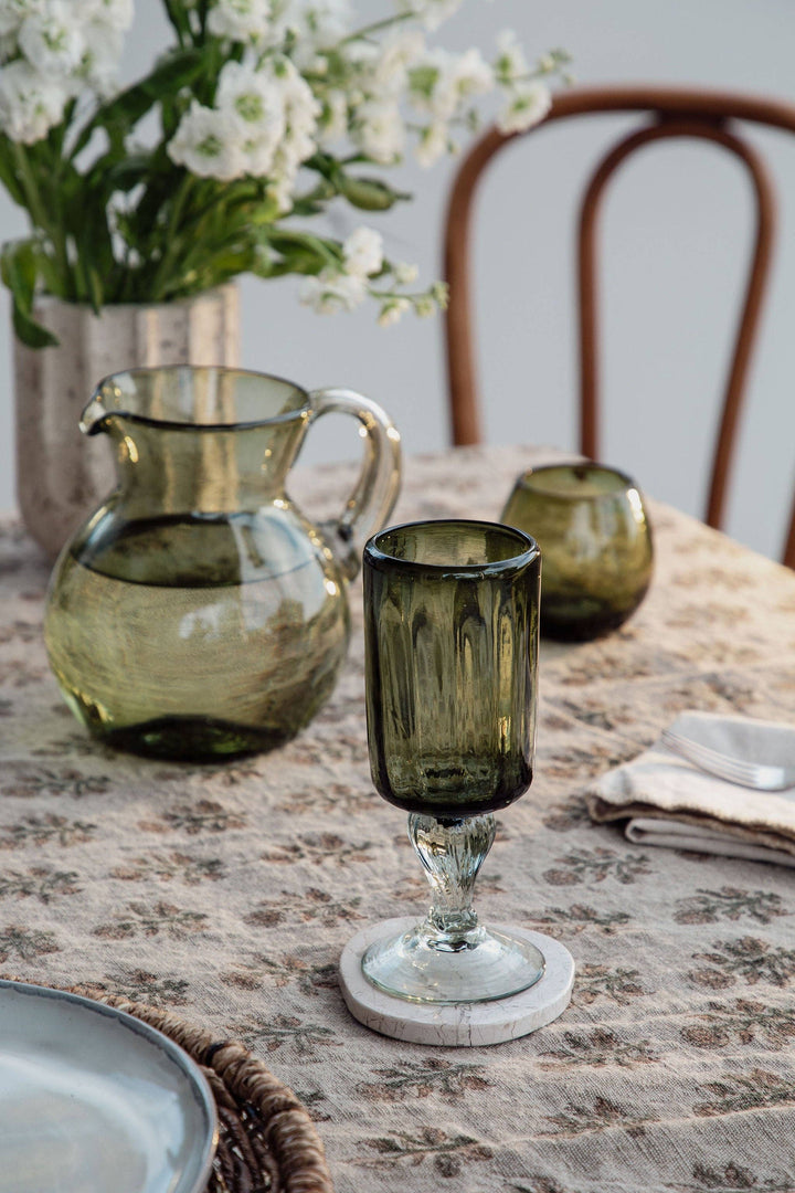 Handcrafted from 100% recycled glass, this piece reflects the artistry of traditional glassmaking. Each item features natural variations in size, shape, and surface, with subtle details such as air bubbles, specks, pontil marks, or hand tooling that speak to its handmade origin. These qualities are embraced as part of its perfectly imperfect character.