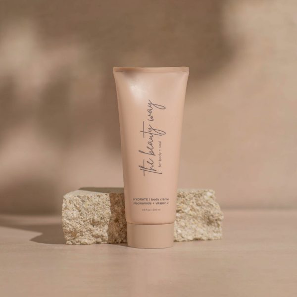 Moisturize your skin with the HYDRATE Body Créme from The Beauty Way. The Body Créme a luxurious blend formulated with nourishing shea butter, vitamin E, and essential oils. It features Niacinamide and Sea Moss Extract, which help retain moisture and improve the appearance of fine lines, skin tone, and texture. Infused with Vitamin C, it brightens and supports collagen synthesis, ensuring your skin looks its best.