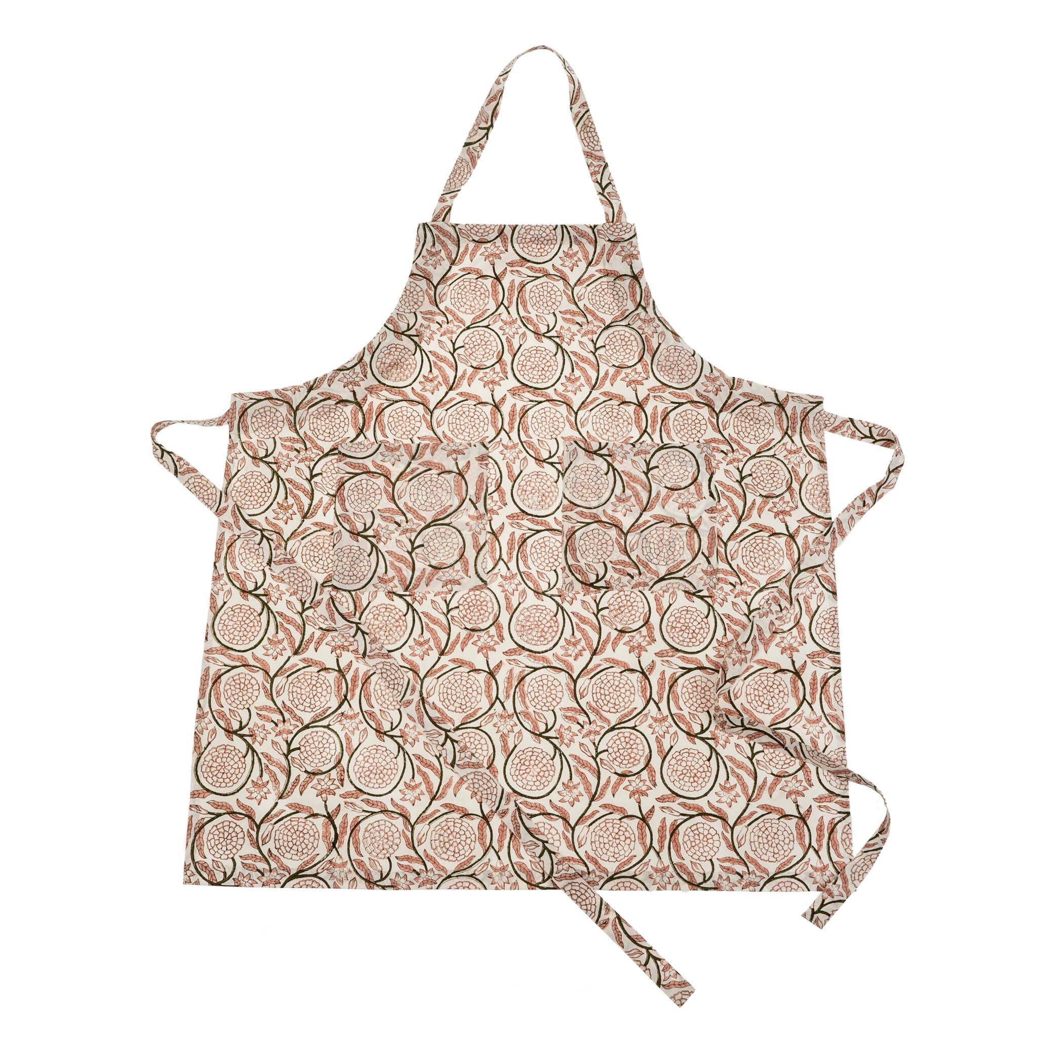 The Jasmine Block Print Apron brings a fresh, colourful block printed pattern that adds a bright and breezy feeling to the kitchen. The tie feeds through the apron and around your neck, allowing easy adjustments for a comfortable fit. Machine Washable.