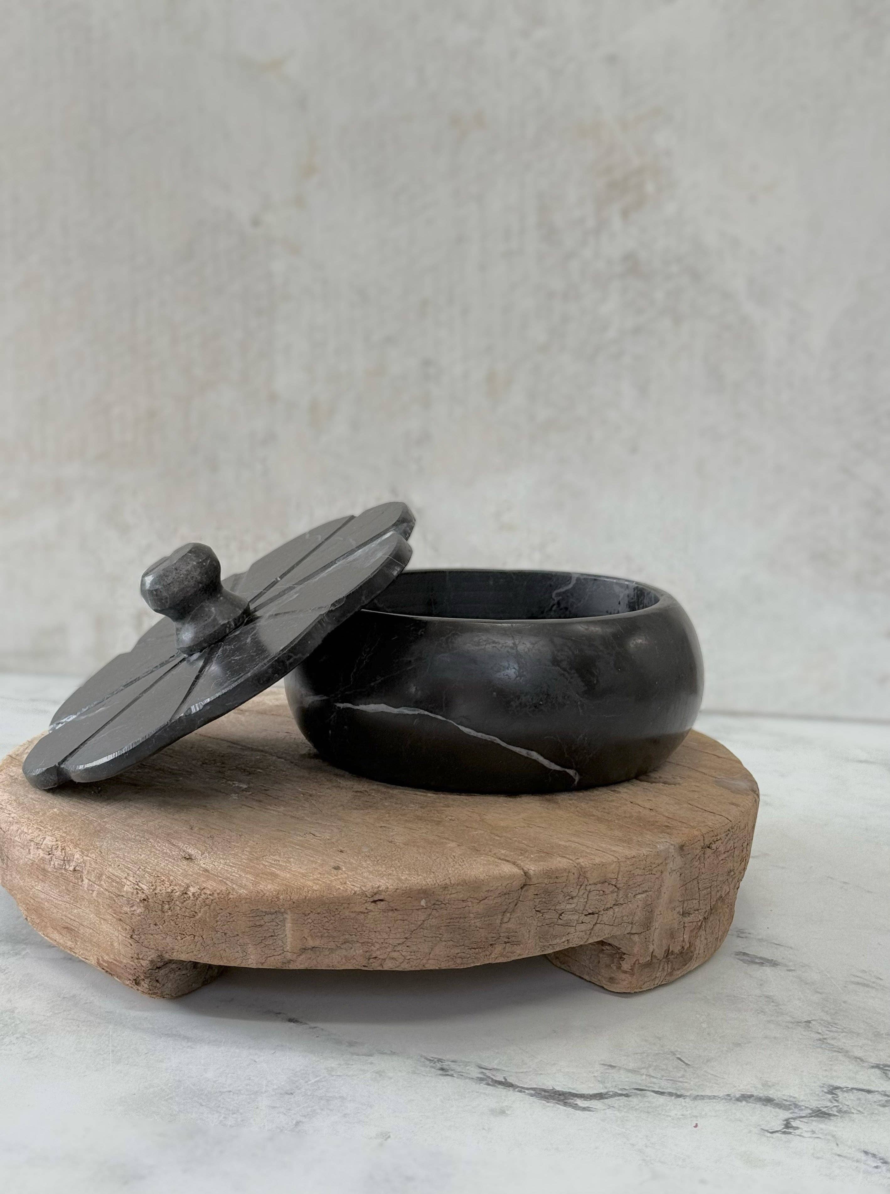 Beautifully formed and entirely handcrafted, these travertine trinket boxes are carved, shaped, and polished by hand. The natural stone ensures each piece features unique variations in tone and veining, celebrating the inherent beauty of marble and making every box truly one of a kind.
