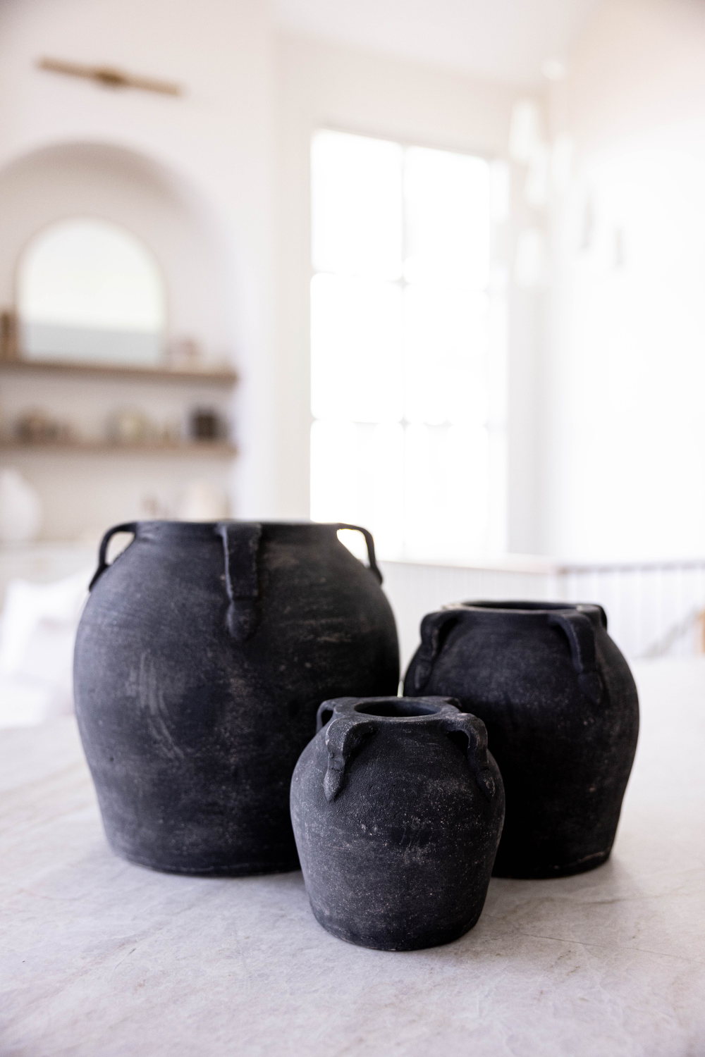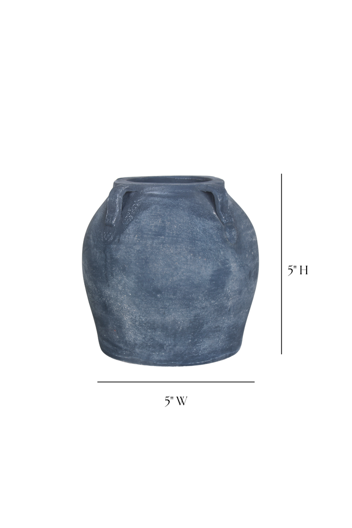 Vintage-inspired terracotta vase with a soft black wash finish. Perfect for shelves, tables, or bedrooms - style with dried flowers or display alone for elegant simplicity. The versatile black color complements any decor.