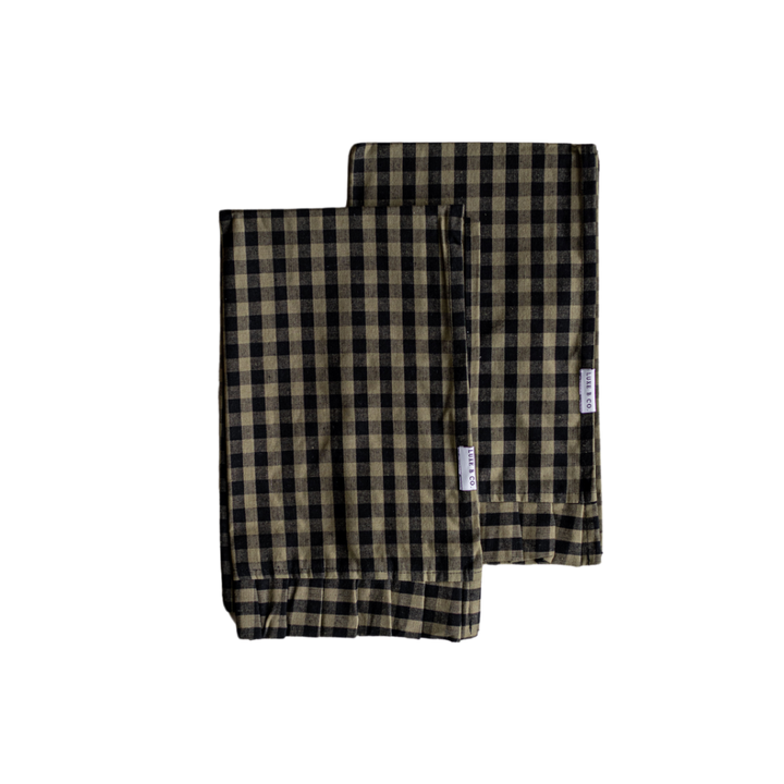 Made from 100% organic cotton with durable weaving that softens with each wash while maintaining strength. Perfect for drying dishes, cleaning countertops, or handling hot cookware. The classic gingham pattern adds charming style to any kitchen. Keep one handy and store the other, or place both on separate racks for easy access. Made in India. 18" W x 28" L