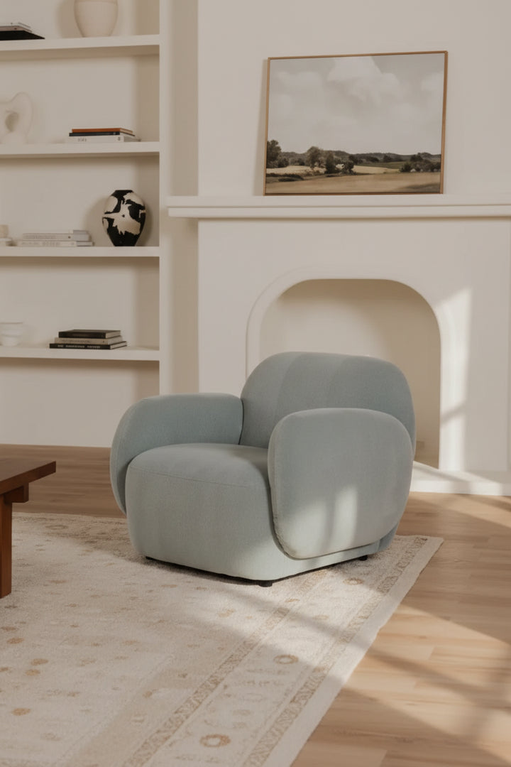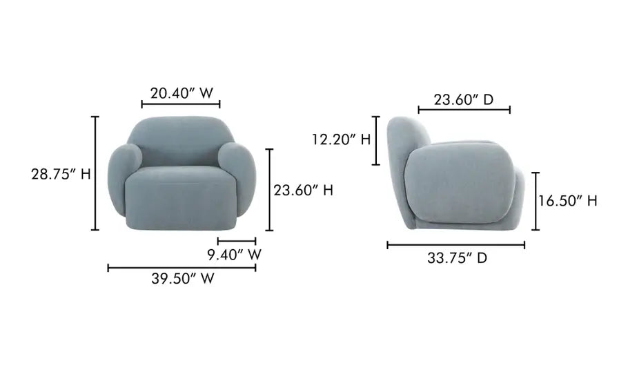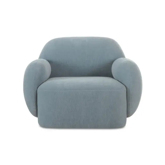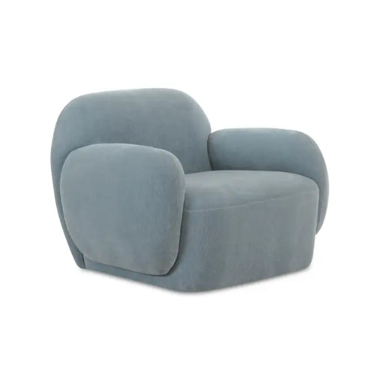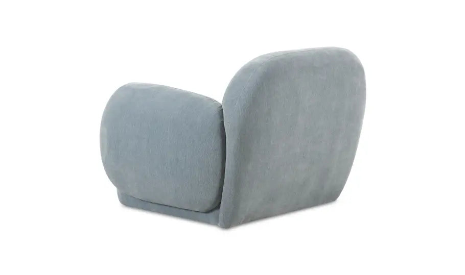 The Sky lounge chair embraces minimalist, understated elegance with its low-profile, modernist silhouette. Wrapped in exaggerated velvet fabric, it offers a distinct tactility and comfort. The bold, curved arm design makes a stylish statement, harmonizing with the sleek form to create an inviting focal point in any setting.