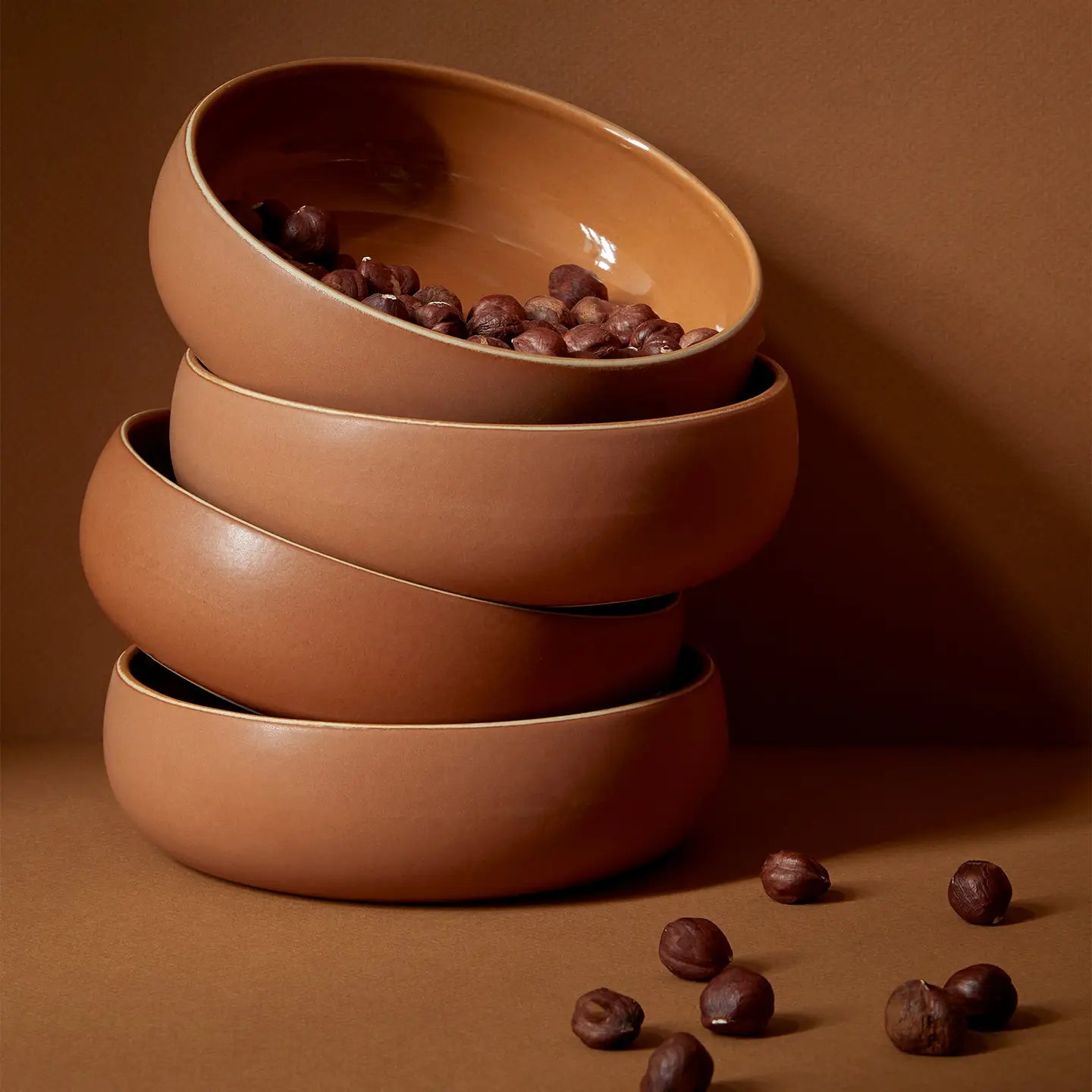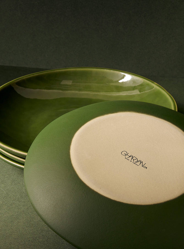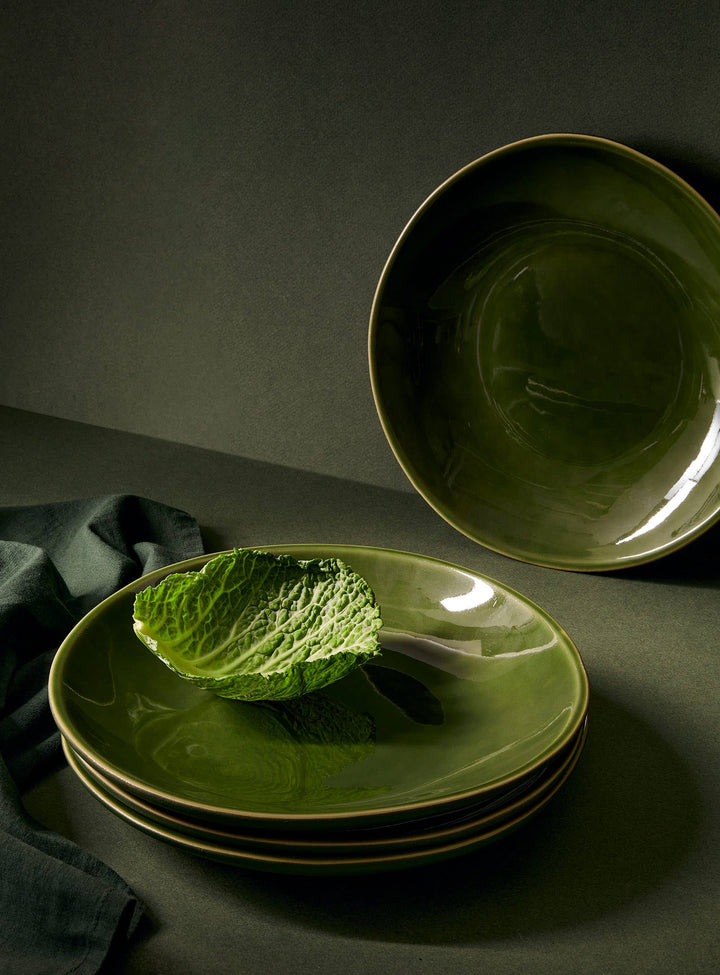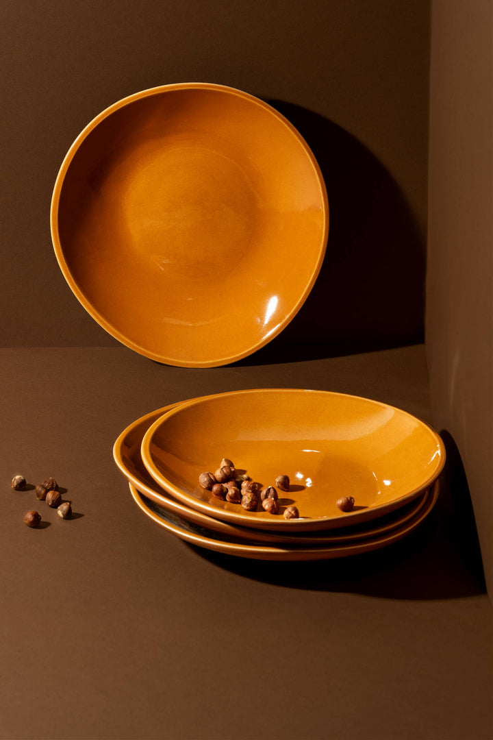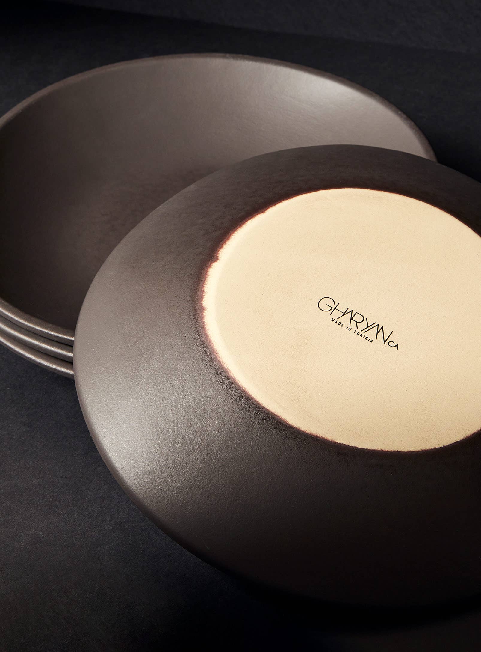 Elevate your dining experience with this stunning collection of handcrafted dinner plates. Each organically rounded plate is unique, showcasing a matte finish for rustic charm and an interior glaze for a refined touch.