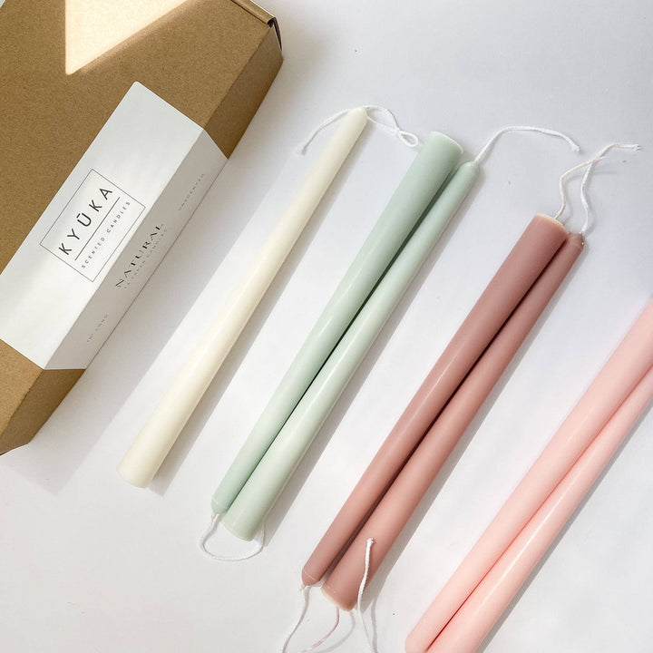 Set the perfect mood with our graceful taper candles. Each one is crafted to burn slowly and evenly, creating that magical flickering light that makes dinner parties feel extra special. We love how versatile these are - from intimate date nights to festive holiday tables, they have a way of making every gathering feel thoughtfully curated. Unscented burn.