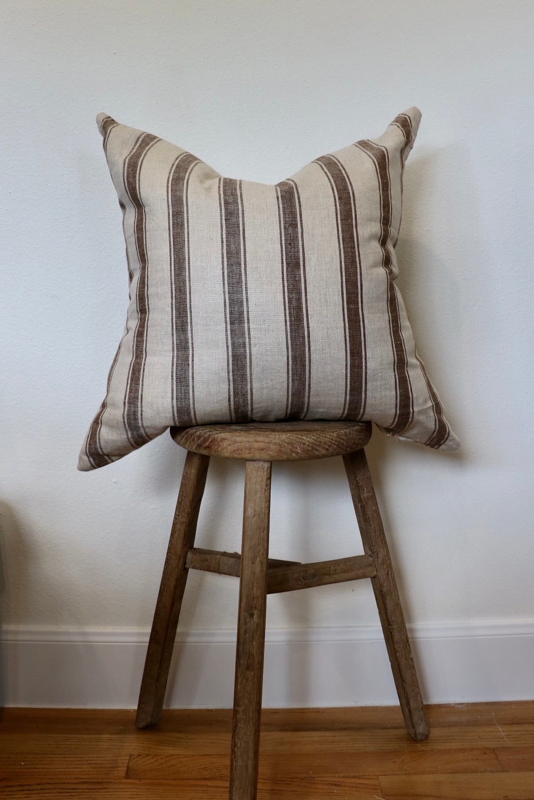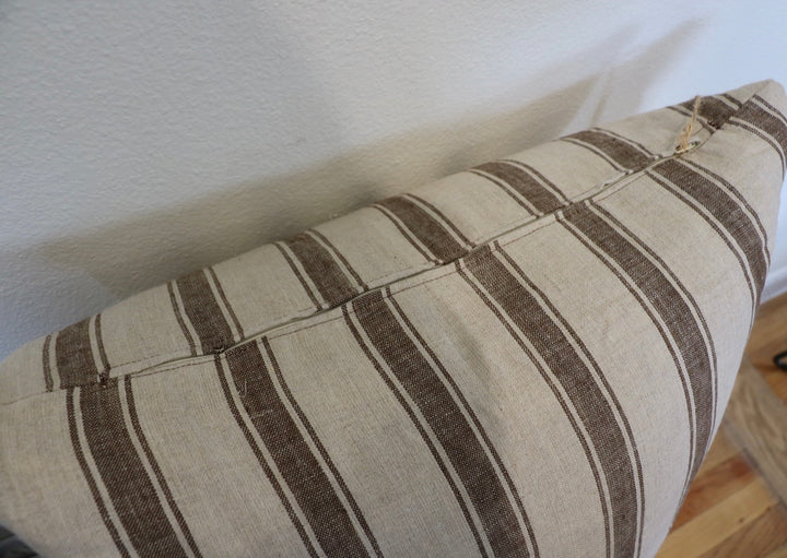 Elegant striped pillow crafted from 100% premium linen fabric. Each pillow includes a soft down alternative insert with convenient zipper closure for easy removal and cleaning. Made with meticulous attention to detail. Dry clean only.