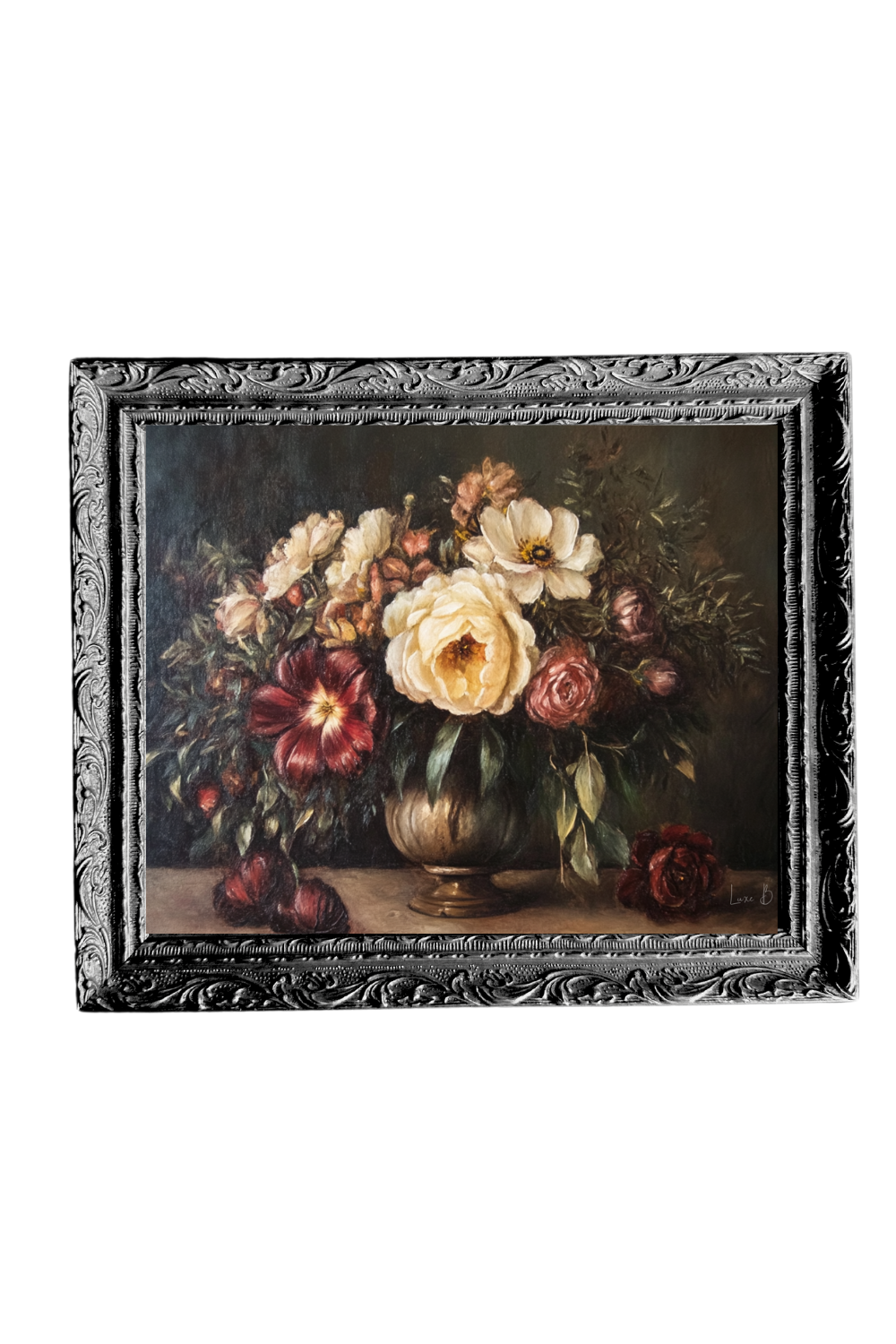 8" x 10" Vintage Floral Bouquet French Black Mould Framed Art. This stunning piece, encased in a high-quality frame, enhances the aesthetic of any space. It is ideal for those wanting to add an extra touch of decor to their kitchen, living room, bedroom, or shelf display.