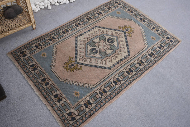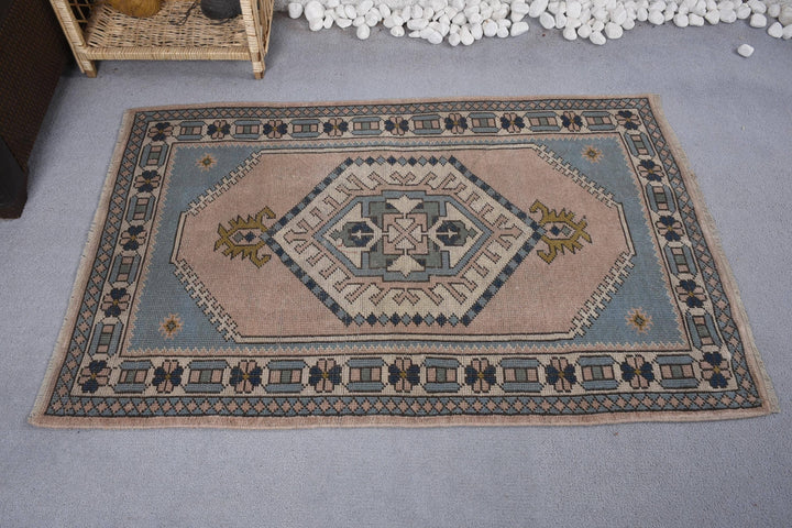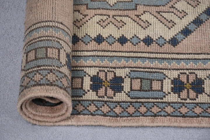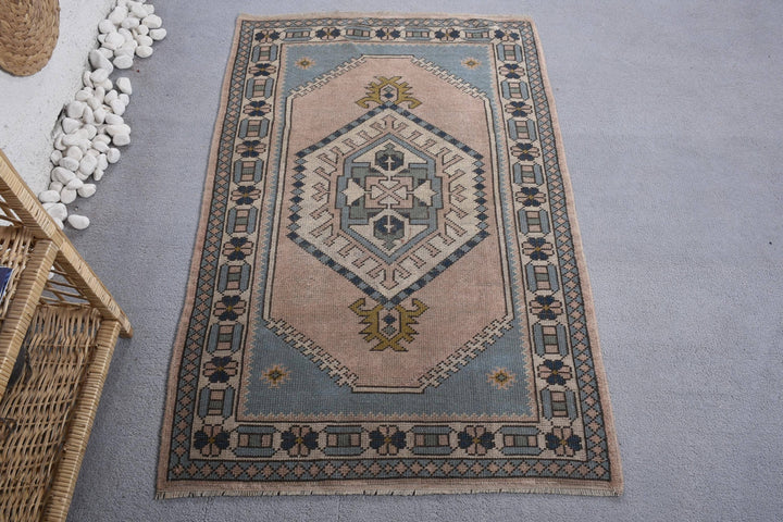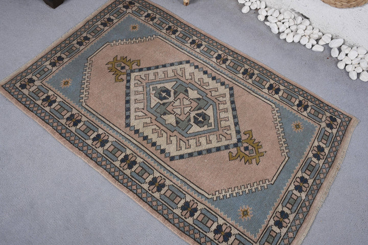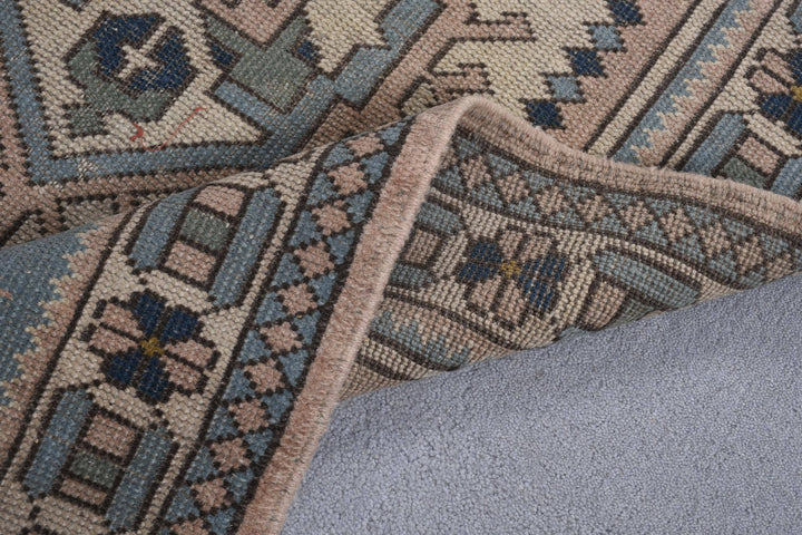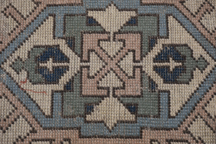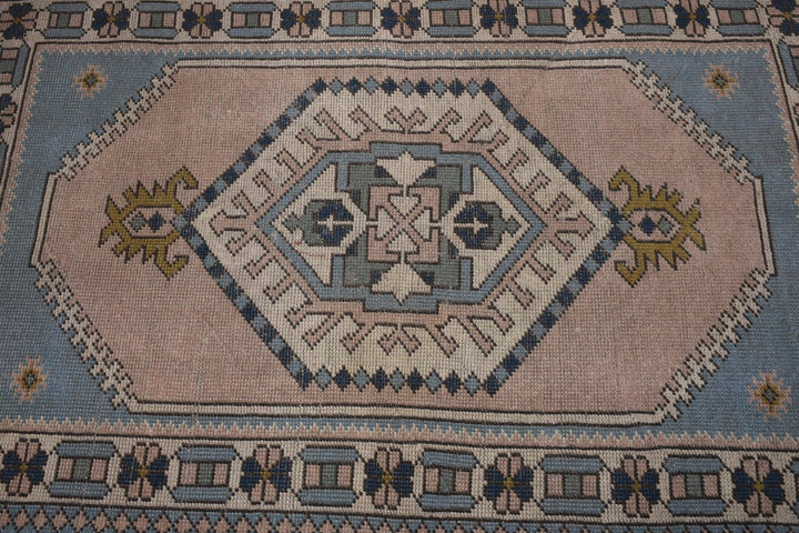 Vintage Turkish Rug - Soft Pink & Blue Geometric