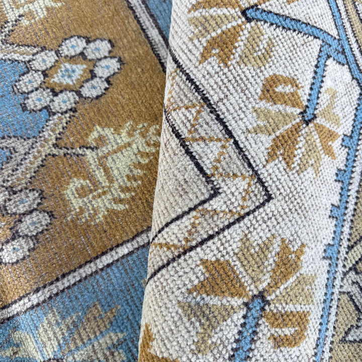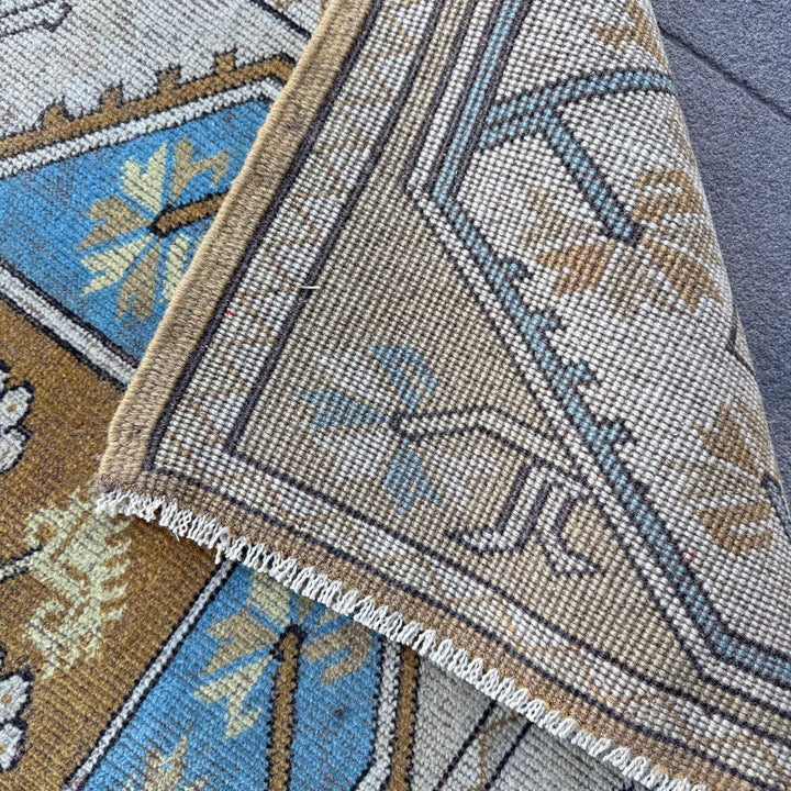 Vintage Turkish Anatolian Rug Blue & Taupe Geometric