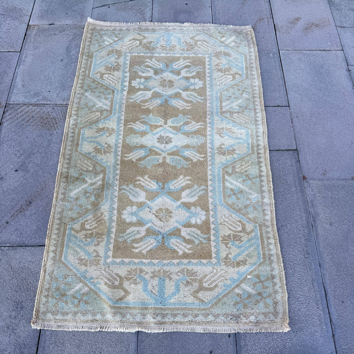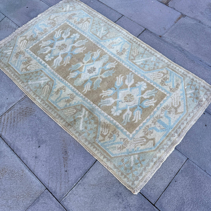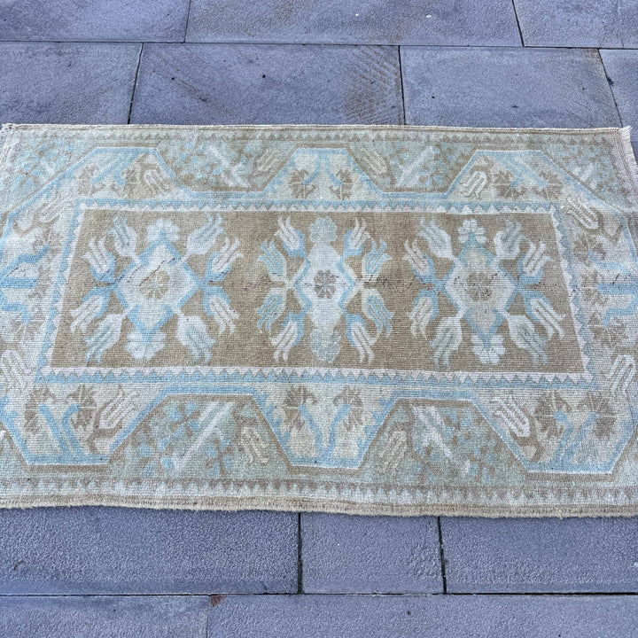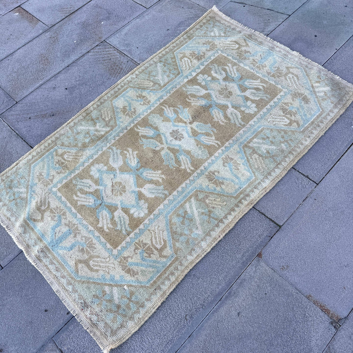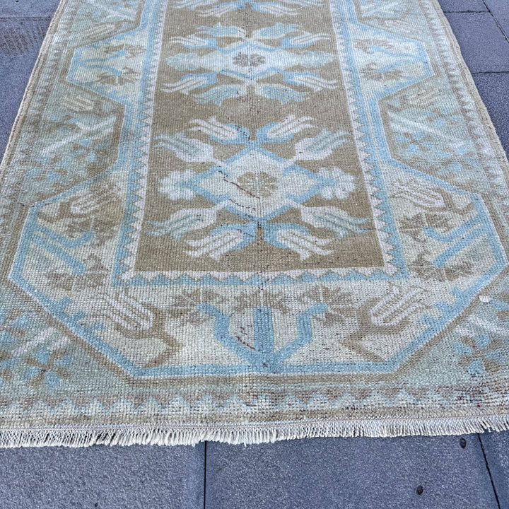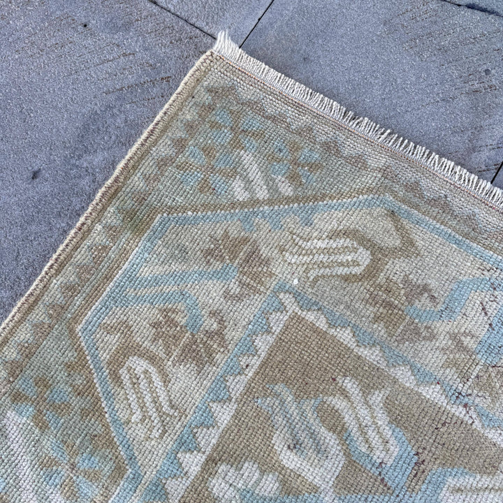 Vintage Turkish Distressed Rug - Pale Blue & Neutral